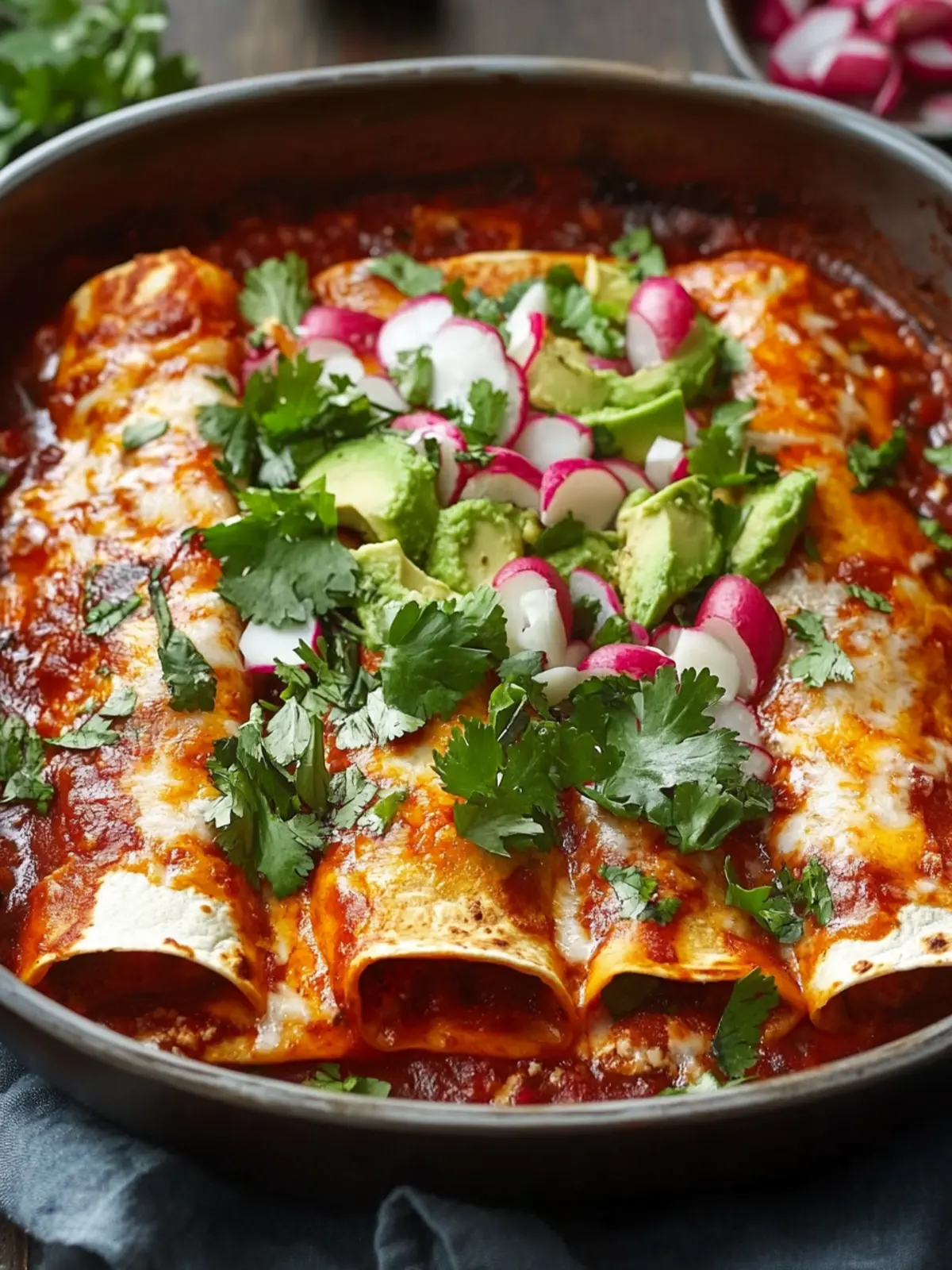 Store any leftover cooked enchiladas in an airtight container in the fridge for up to 3 days. This helps maintain their flavor and texture. When you’re ready to enjoy them again, simply reheat in the oven for the best results!