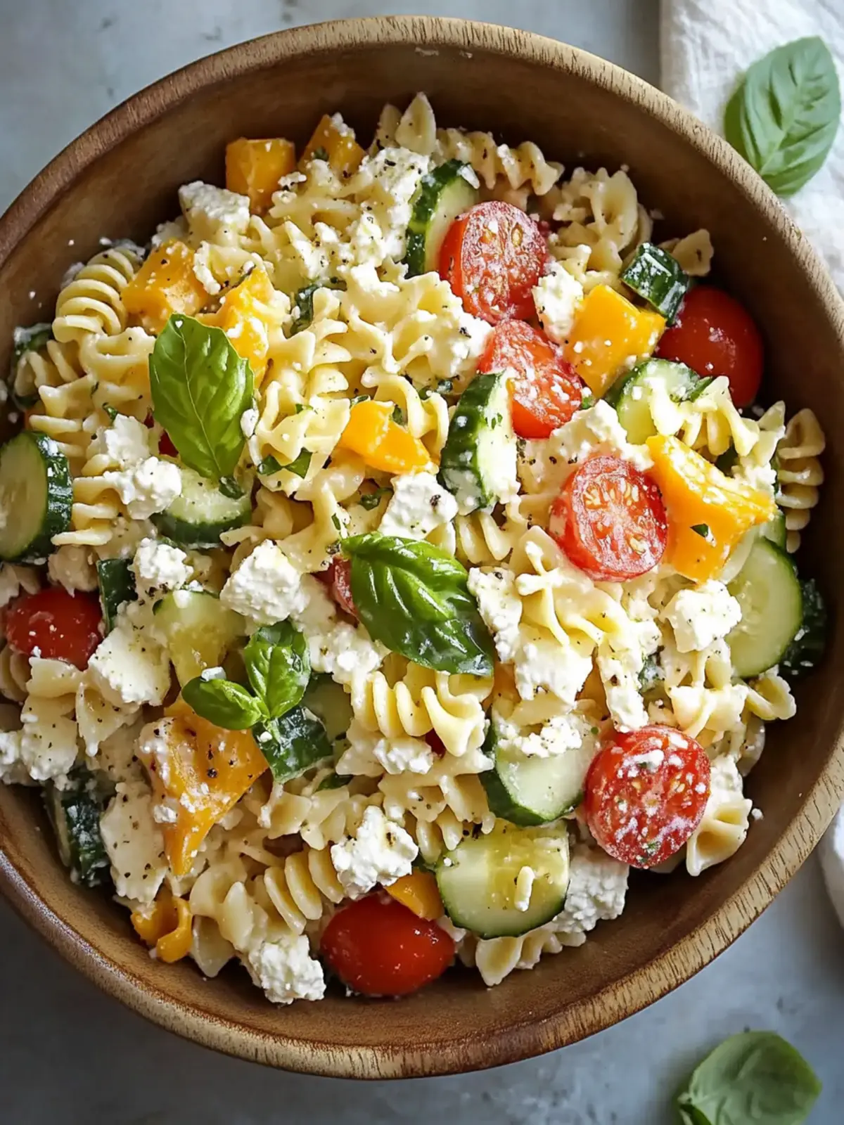 Combine Ingredients: In a large mixing bowl, toss together the cooled pasta with the prepped vegetables until evenly distributed. This base will be wonderfully colorful and inviting.