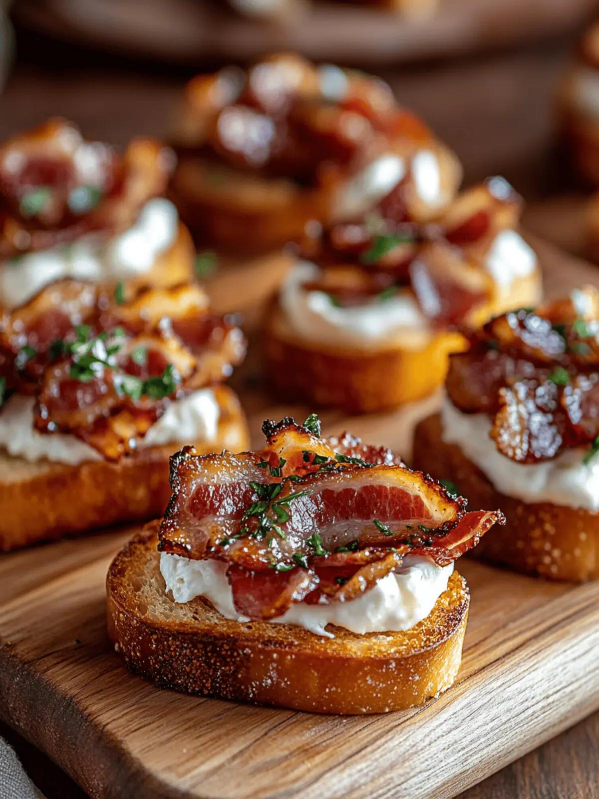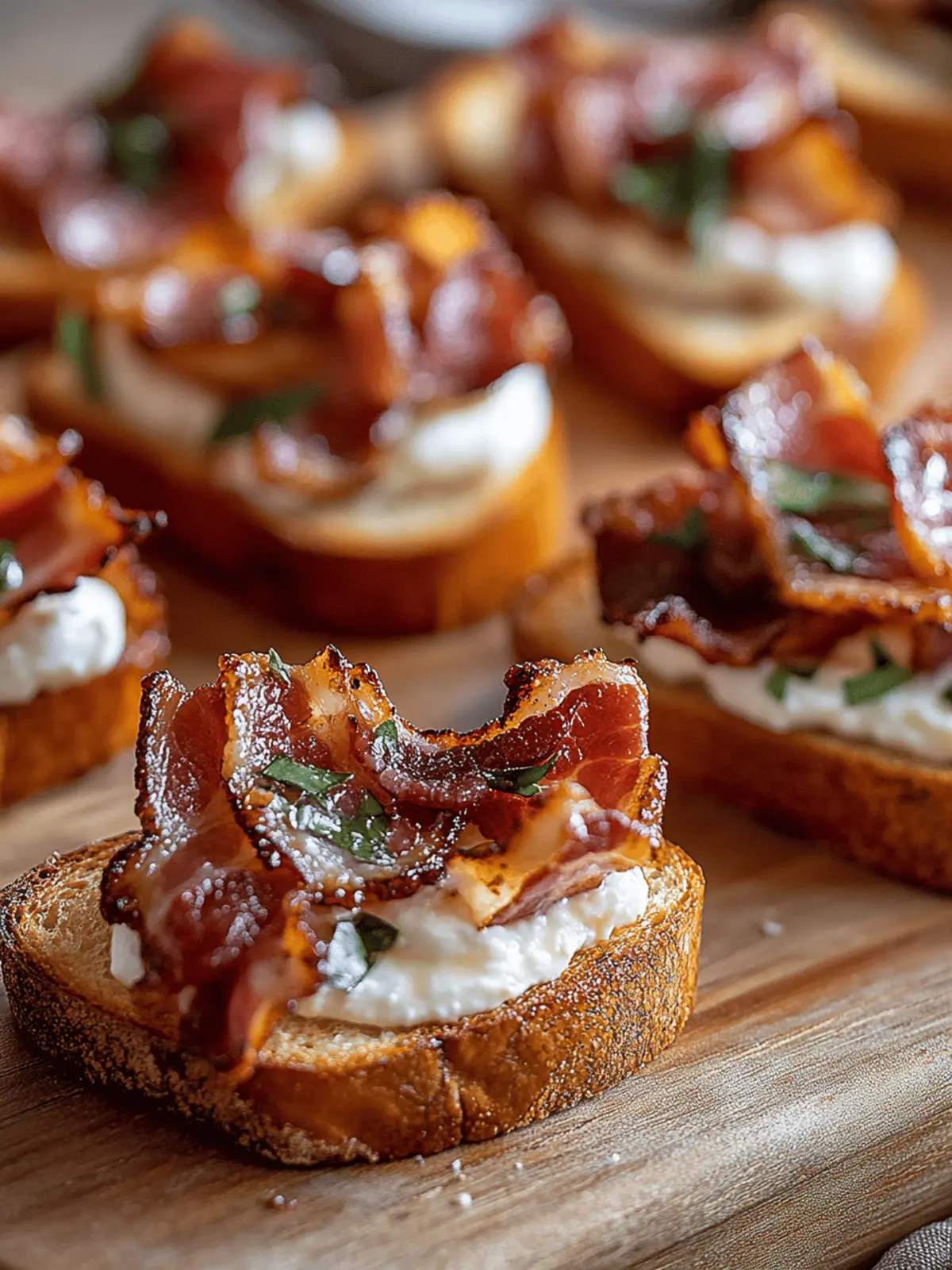 Garnish Smartly: Enhance presentation: Fresh herbs or chopped nuts can make a world of difference, adding an elegant touch to your Million Dollar Bacon Crostini.