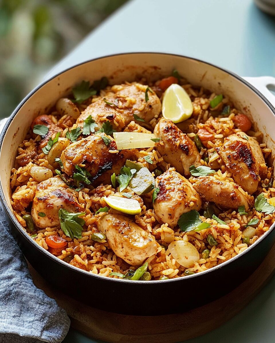 Cook the Chicken & Rice: Add the seared chicken back into the pan along with any juices. Cover, reduce heat to low, and let simmer for 15-20 minutes until rice is tender and liquid is absorbed.