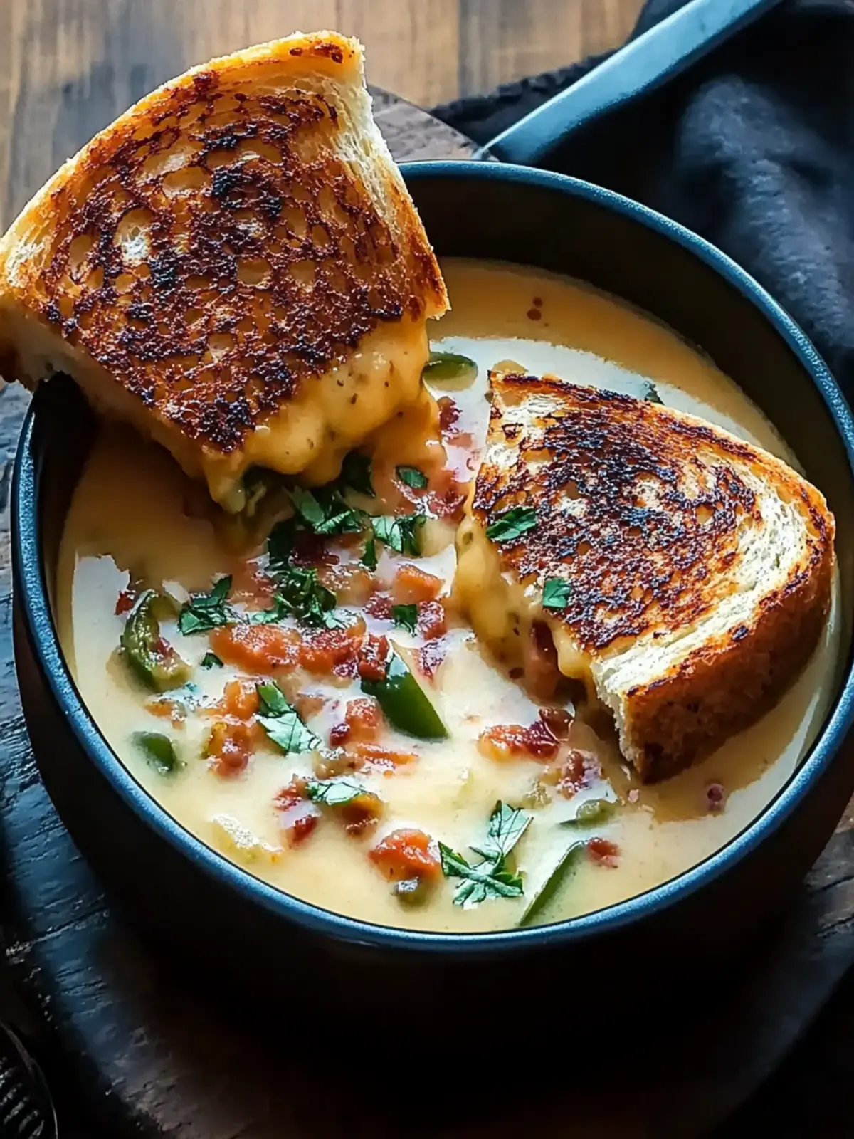 Spicy Jalapeño Popper Soup with Grilled Cheese Bliss