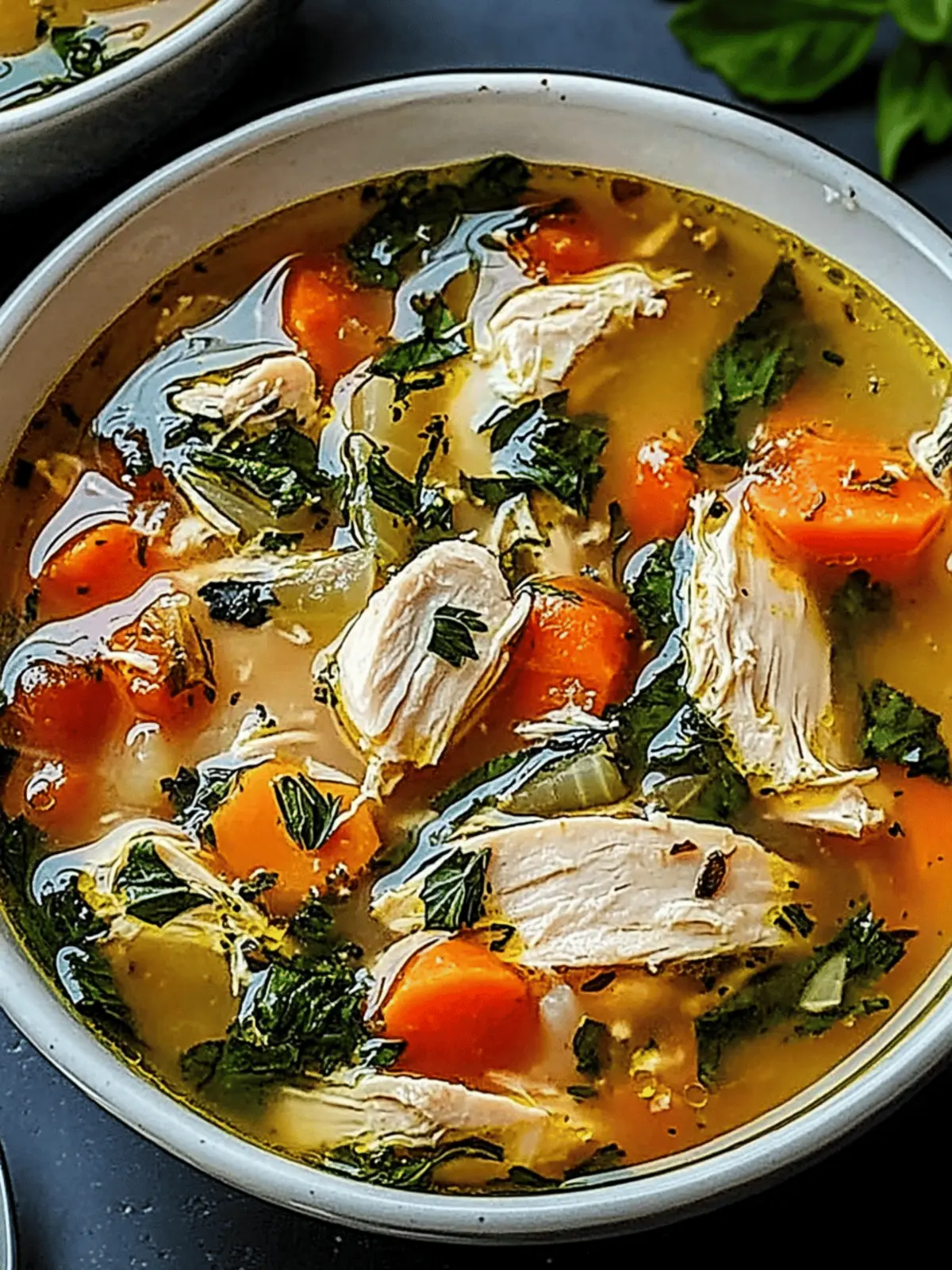 Hearty, comforting goodness: This Tuscan-Style Chicken Soup warms your soul with every spoonful, offering a delightful mix of tender chicken and vibrant veggies.