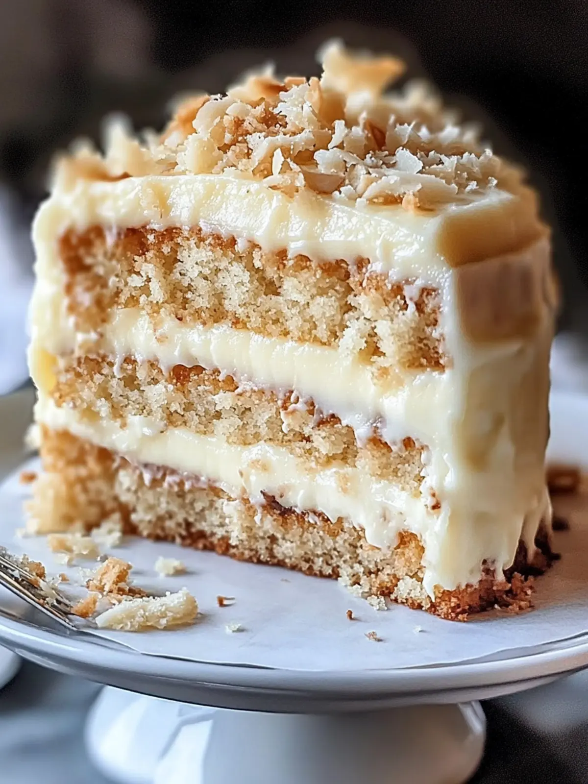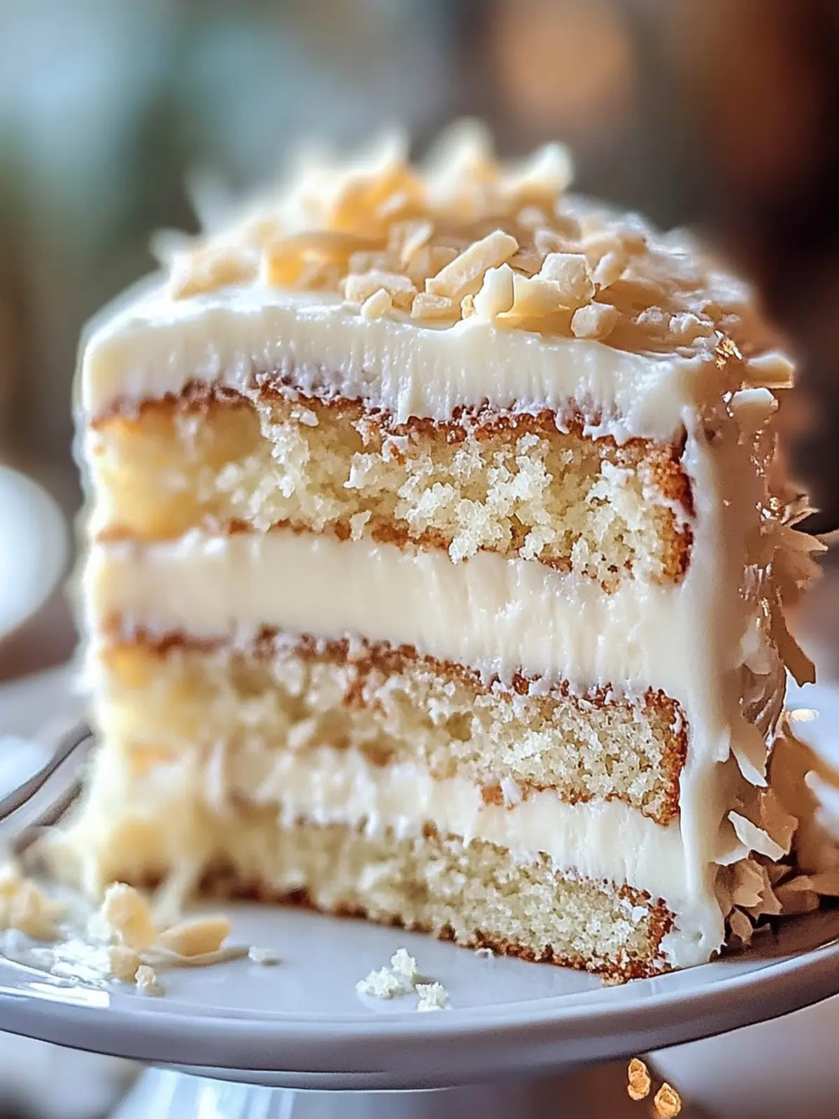 Coconut Whipped Cream: Light and fluffy coconut whipped cream complements the coconut flavors within the cake, binding the elements through a delightful tropical twist.